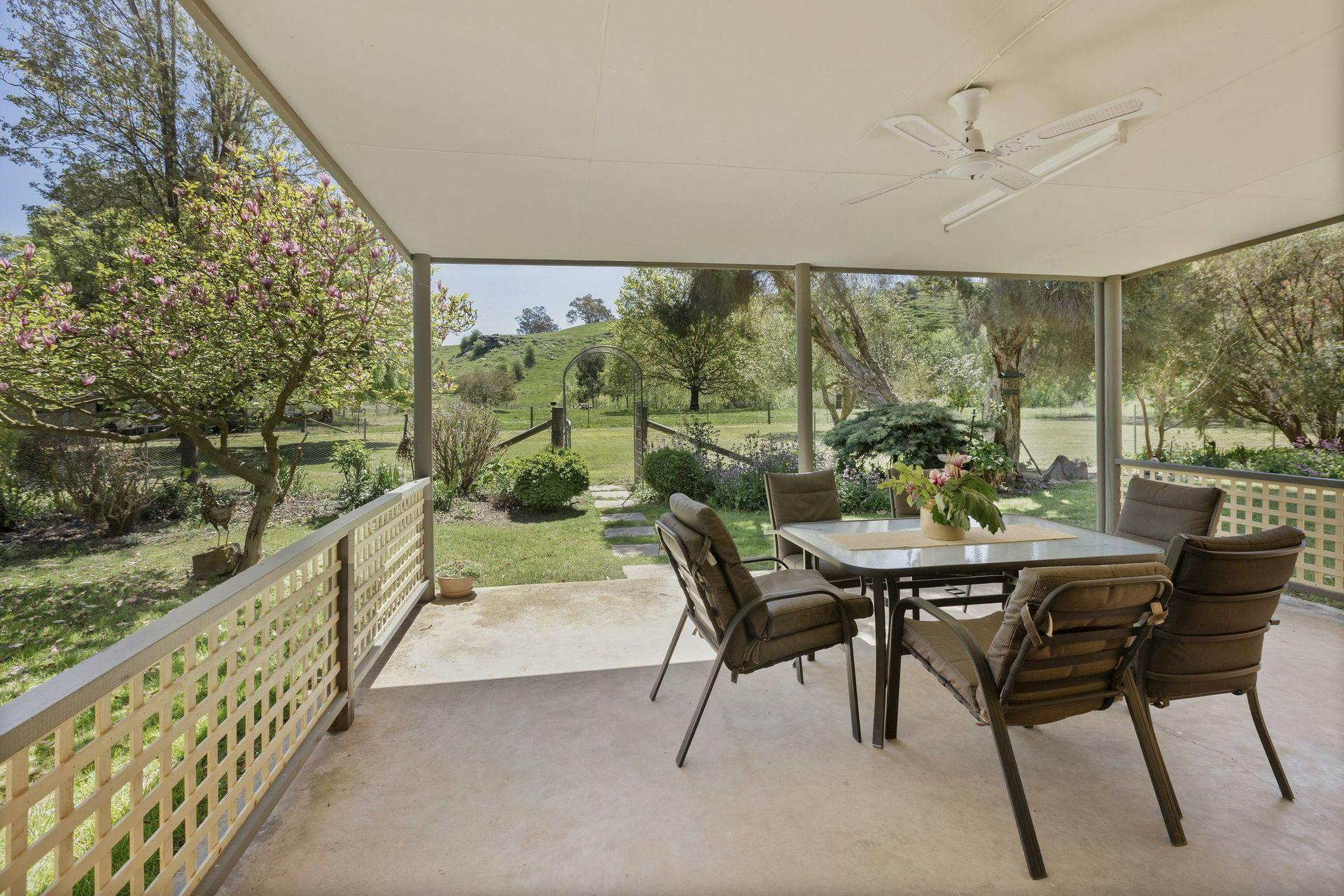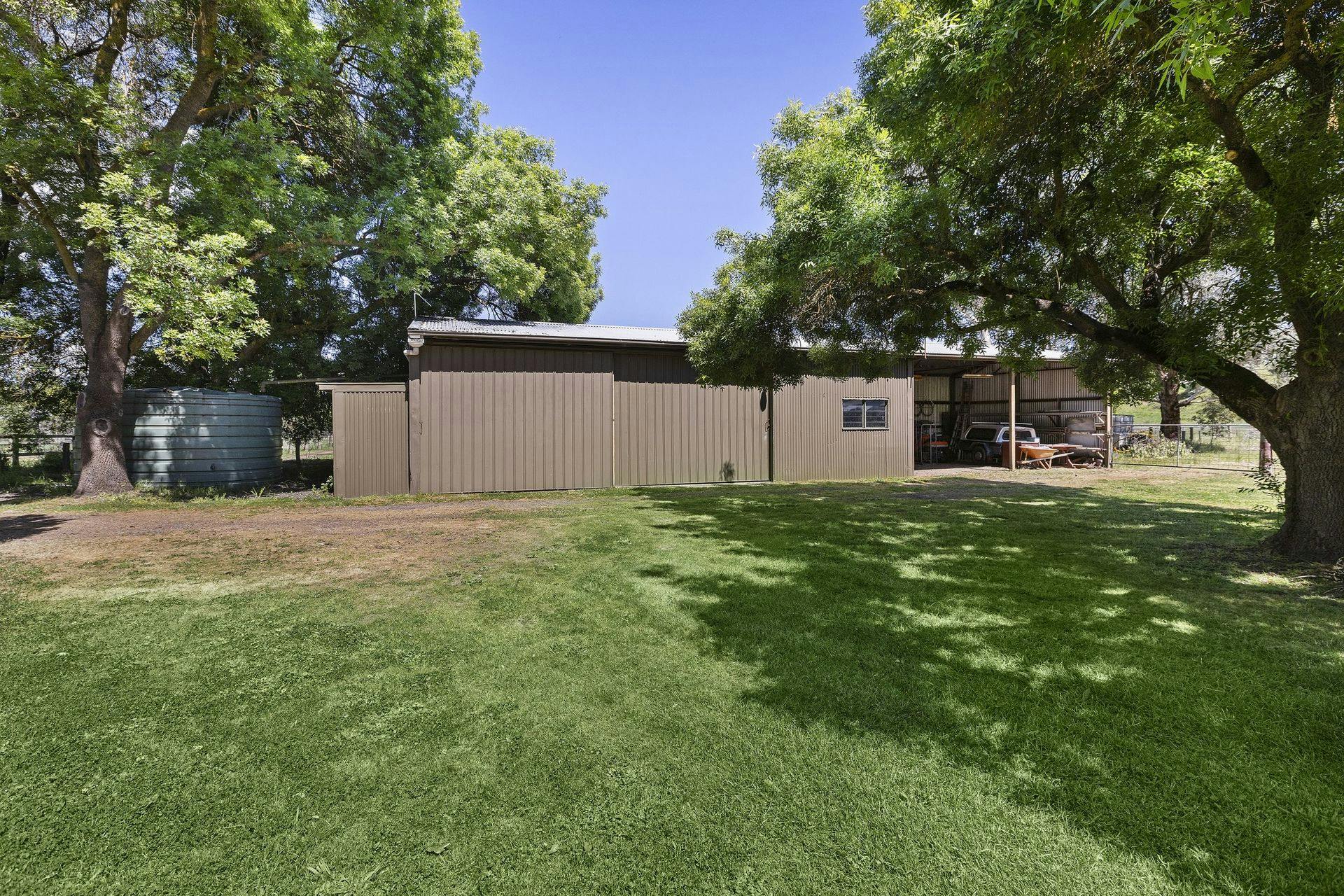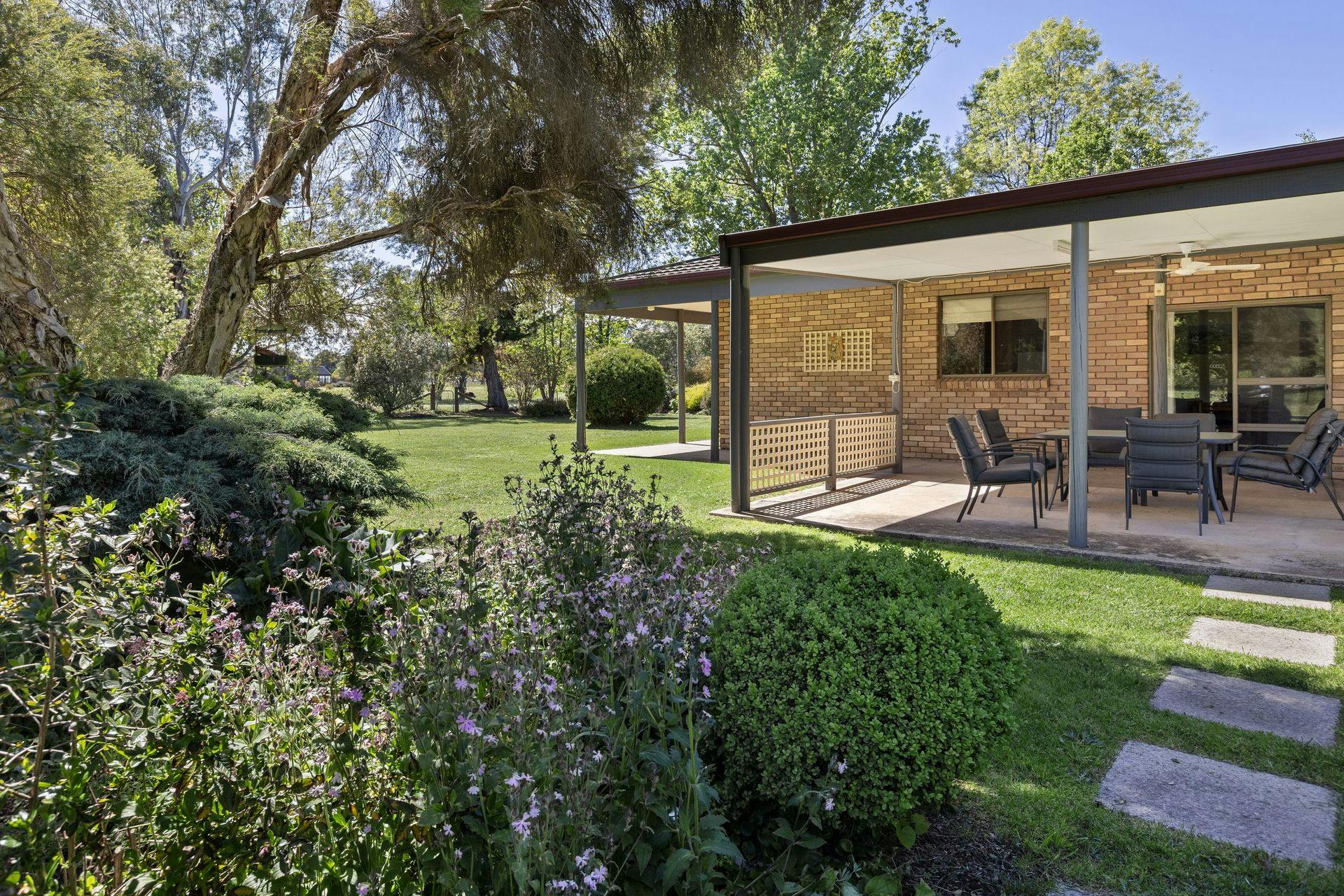 Mature gardens surround the home, creating a peaceful, established setting, while Fords Creek traces the rear boundary, bringing a natural sense of serenity to the landscape. Practical features including a bore and shed support everyday country living, while the expansive skies and quiet environment make it easy to slow down and feel at home.