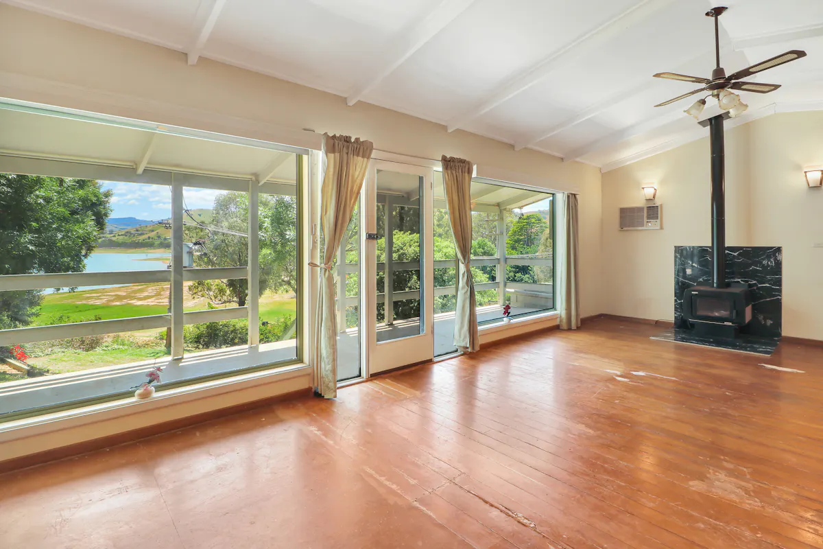 A rare opportunity to secure a 3-bedroom, 2-bathroom home with uninterrupted views of Lake Eildon, offered for the first time in nearly 50 years. Perfect for families seeking space, lifestyle, and the chance to make it their own.Upstairs features a kitchen, two bedrooms with built-in robes, a lounge and dining area, and the family bathroom.